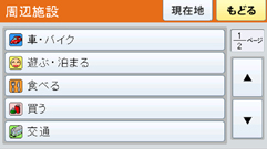 周辺施設の検索方法は、周辺の施設を探して呼び出すを参照してください。