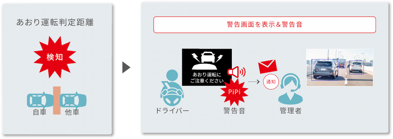 - 事故リスクの高い運転行動を検出し、自動で警告・通知する機能を活用