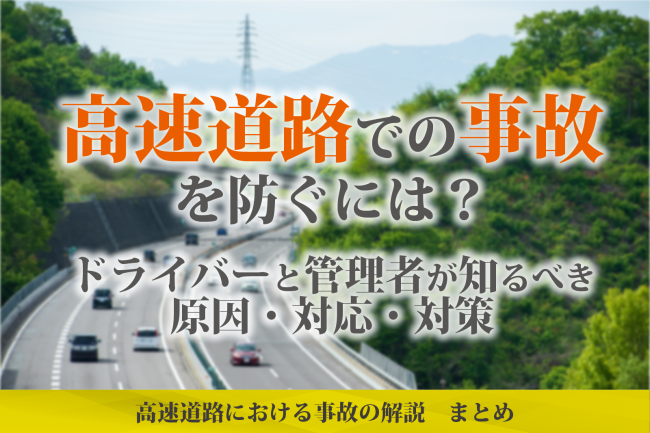 どれだけ安全運転を心がけても、交通事故のリスクをゼロにすることはできません。もし、高速道路で事故や故障が発生した場合、その後の対応が二次被害の防止と被害の最小化に大きく影響します。本章では、事故の際にドライバーが現場で取るべき初動対応の具体的な手順を解説。さらに、法人ドライバーの事故に際し、安全運転管理者や車両管理担当者が組織として果たすべき役割と対応フローを説明します。