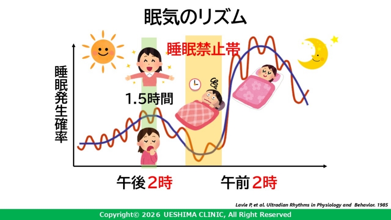 主睡眠でしっかり眠ることはもちろんですが、特に多くの人が活動している午後の「眠気のピーク」を見越して、予防的に仮眠(昼寝)を組み込むことも重要です。