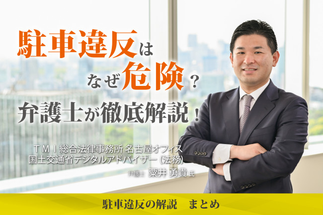 本記事では、駐車違反の基礎知識から、路上駐車が引き起こす事故の実態、実践できる対策まで解説します。解説は、自動車メーカーや国土交通省に出向した経験があり、自動車・モビリティ分野に精通した弁護士の粟井勇貴氏(TMI総合法律事務所/国土交通省デジタルアドバイザー)に話を伺いました。
