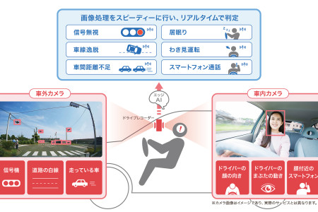 AIがドライブレコーダーのカメラ映像から一時不停止や速度超過など人的事故要因の7割にあた...