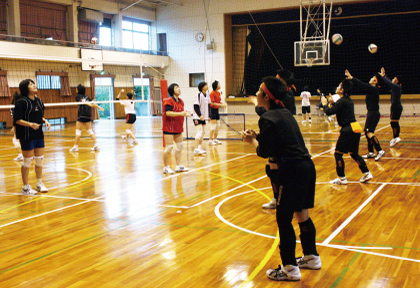 体育館に着くと、「こんにちは!」と大きな声で私達を出迎えてくれ、チームの元気のよさがひしひしと伝わってきます。さらに、コートに入るときは「お願いします!」、アドバイスの際は「ありがとうございます!」といつも礼儀が正しく、練習中でも、ボールが転がっていると素早く拾いにいくなど、当たり前のことがきちんと行われているので、いつも感心させられます。私たちも一緒にプレーをしていてとても気持ちがいいです!