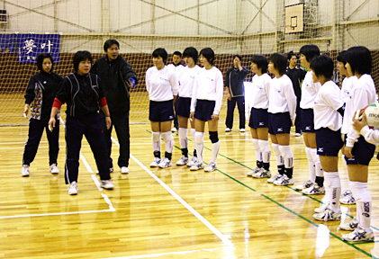 - 今日は、チームに刺激を与えてもらおうと思い、バレー教室に参加させて頂きました。活気と元気あふれた練習で、生徒たちの気持ちに影響を与えて頂いたと思っています。今日学んだことを活かして県予選に望みたいと思います。ありがとうございました。