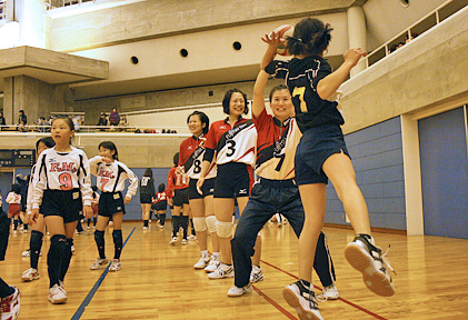 全日本選抜チームはママさんをメインに指導に当たりました。ママさんはとても積極的です!!