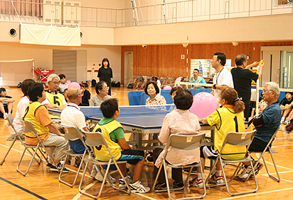 午前中は座ってバレーをする「シッティングバレー」、ネットの下を使って競技する「ローリングバレー」、鈴の入った風船を使って老若男女が楽しめる「ふうせんバレー」の紹介と体験を行いました。新たに登場したふうせんバレーを応用した「テーブルふうせんバレー(仮)」の紹介もあり、みんな興味津々の様子でした。