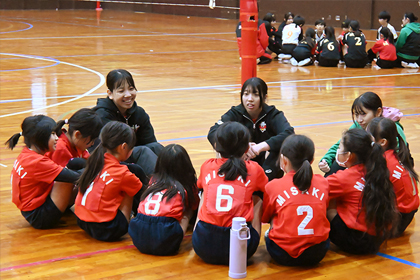 2日間一緒にいたので選手や大学生ともすっかり打ち解けて、クールダウン後の質疑応答でもバレーボールが上手くなるためにはどうすればいいかと質問が飛び交っていました。閉会式後も選手たちからサインを貰って「めっちゃ楽しかった!」と受講生たちの満足げな姿が印象でした。