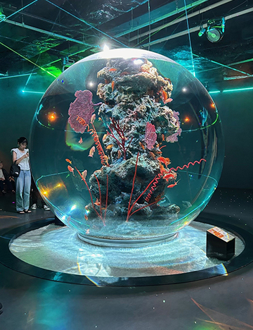 部屋や階ごとにそれぞれ違った雰囲気で作られており、水槽も水槽と融合したプロジェクションマッピングも魅力的で時間を忘れてずっと居たくなるような空間でした!