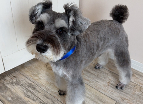 私の実家ではミニチュアシュナウザーを飼っています。生まれて3か月で飼い始めました。寝ているときの無防備さがとても愛おしいです。散歩大好き、食べることが大好きな家族のアイドルです。