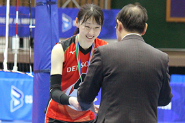 はじめは9人制のルールに慣れずチームについていくことに必死でしたが、2年目にキャプテンを務め先輩方に助けてもらいながら2冠を経験することができ、そこからチームにどんどん愛着が沸いていきました。たくさん練習して毎試合欠かさずビデオを見て自分と向き合って、これならどうだとバレーボールをすることが最後まで大好きでした。竹口GM、こんな私をテンに入れていただきありがとうございました!引き続きレッドフェニックスの応援をよろしくお願いいたします。